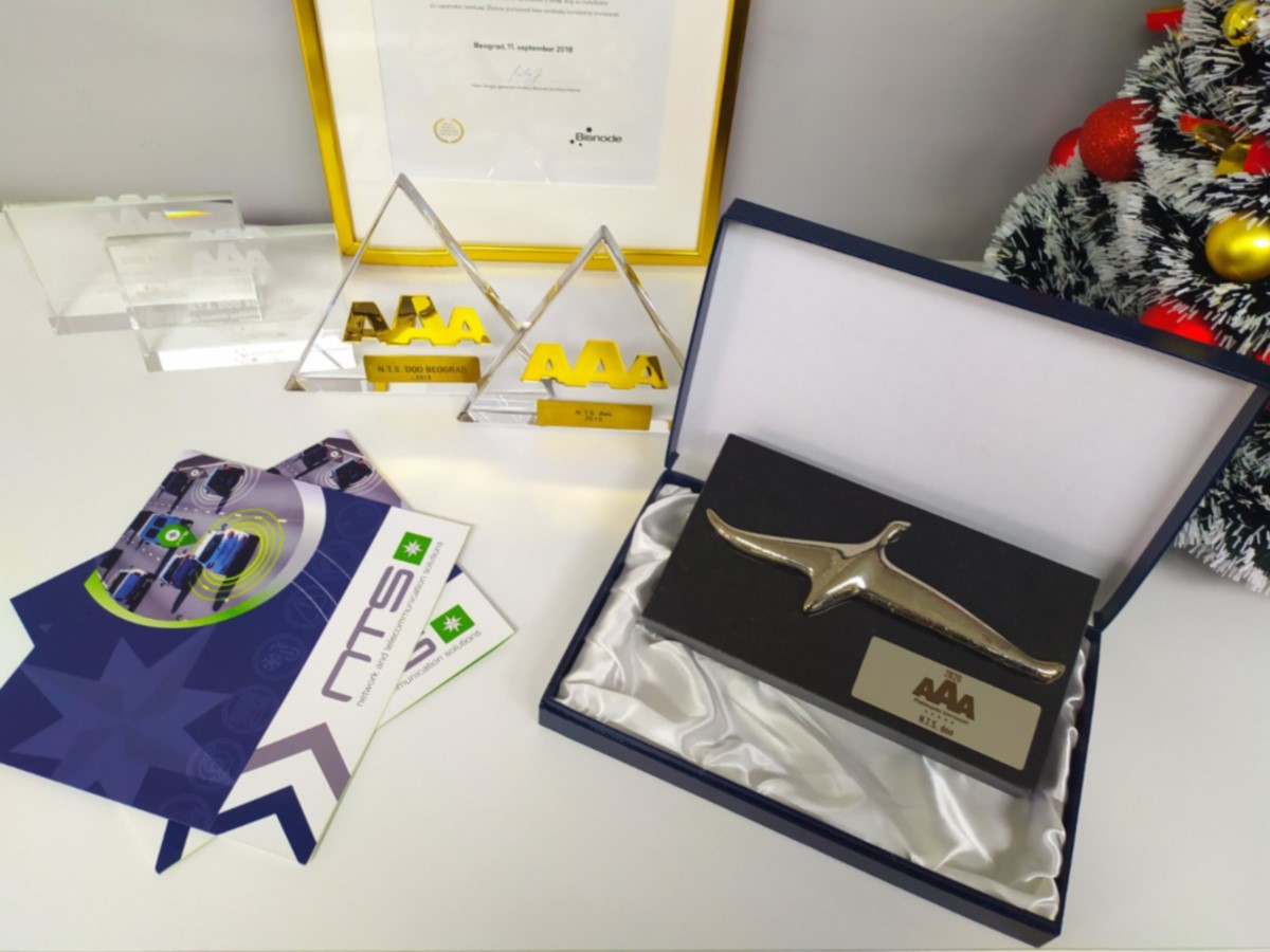 Kompanija NTS je nagrađena Platinastim sertifikatom bonitetne izvrsnosti AAA Platinum za 2020. godinu i na taj način se uvrstila u najviši dio ljestvice bonitetne izvrsnosti privrednih subjekata u Srbiji.