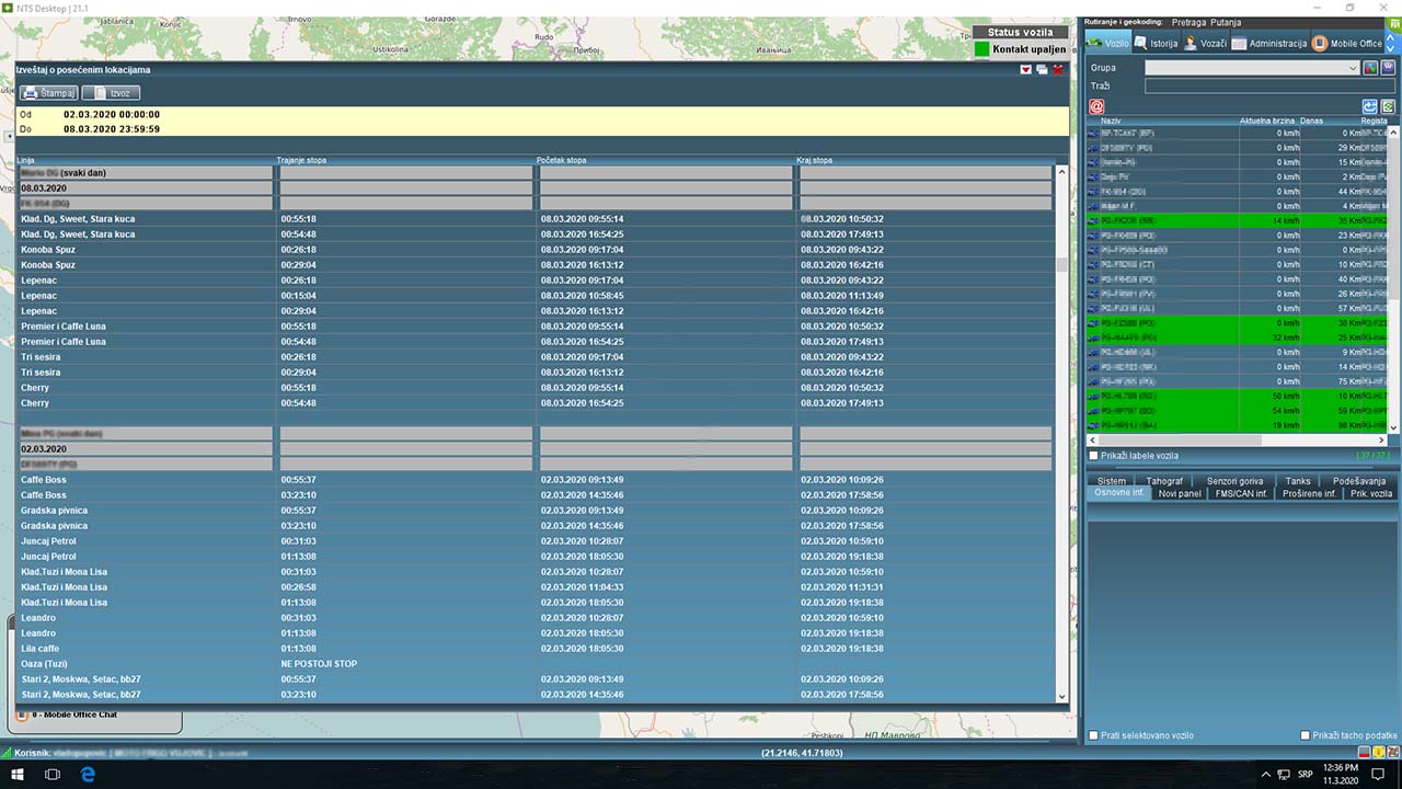 NTS rešitev za dejavnost prodaje na terenu in distribucije zagotavlja pomembne podatke tako pri upravljanju z voznim parkom, kot tudi preveritve izpolnjenosti načrtov prodaje in distribucije. Vodja distribucije (prodaje) lahko preveri, na katerih lokacijah se je voznik ustavil in koliko se je zadržal, hkrati lahko preveri ali je na teh lokacijah pustil motor delati in kako dolgo.