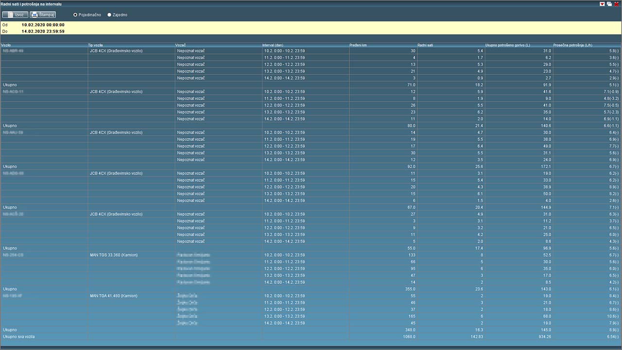 Specializirana NTS rešitev za upravljanje transportnih sredstev in delovnih strojev v gradbeništvu, kot tudi v podobnih dejavnostih, temelji na ponujanju verodostojnih podatkov o porabi in točenju goriva, povprečni porabi, prevoženih kilometrih in doseženih delovnih urah. Delovne ure je mogoče dobiti po lokacijah, obdobjih, glede na število vrtljajev itd.