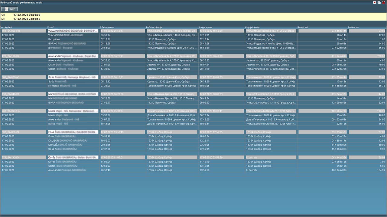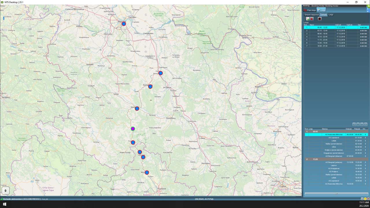 NTS rešitev za podporo upravljanju pri prevozu potnikov, poleg standardnih možnosti za zmanjšanje stroškov dela vozila, ponuja tudi pomembne možnosti za izboljšanje storitve prevoza in za zmanjšanje stroškov pisarniškega dela. Zaradi tega smo razvili posebno oblikovan modul za ustvarjanje in vodenje avtobusnih linij, turnusov in dnevnih razporedov. Modul omogoča tudi tiskanje potnih nalogov v skladu s turnusom, ki je dodeljen vozilu. Poseben del modula je skupek poročil za nadzor dela voznikov avtobusa. Med temi poročili je najbolj pogosto uporabljeno poročilo za nadzor prihoda in odhoda s postaje, kjer se preveri prihod na postajo in meri zamujanje pri prihodu in odhodu.