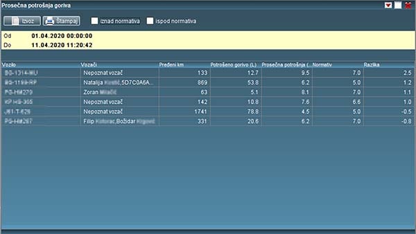 Donoseći odluke na bazi rangiranja vozila u odnosu na normiranu potrošnju, prosečnu potrošnju voznog parka, prema vremenu rada u praznom hodu itd.